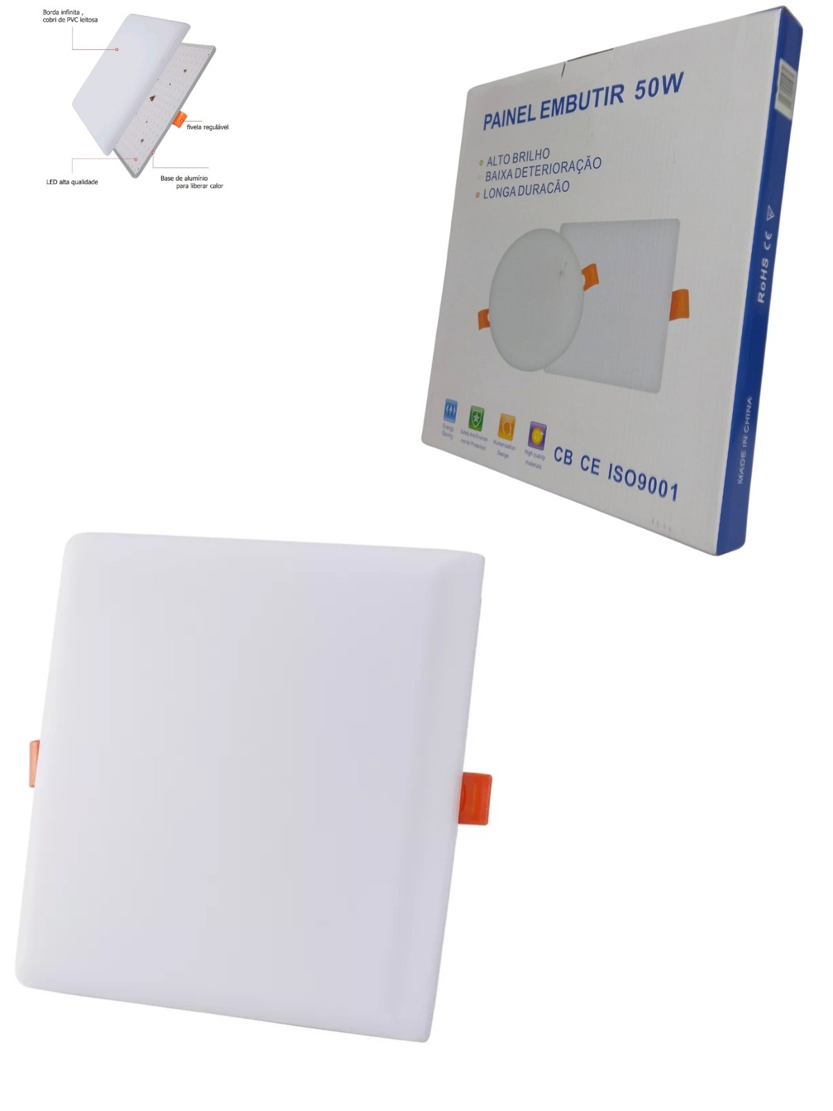 Plafon Led Borda Infinita 50W Embutido Quadrado Frio 6500k OU NEUTRO 4000K 30CM x 30cm Bivolt Primerio linha com 100% led de lumen 3900lm